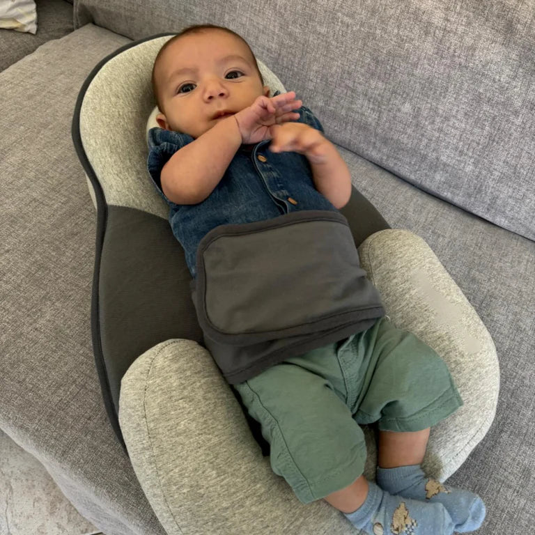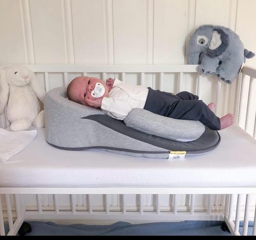 Die Nimbusfuchs Schlummerwiege hält dein Baby in einer sicheren Rückenlage und bietet gleichzeitig die sanfte Erhöhung, die es für eine ruhige Verdauung und erholsamen Schlaf braucht.
